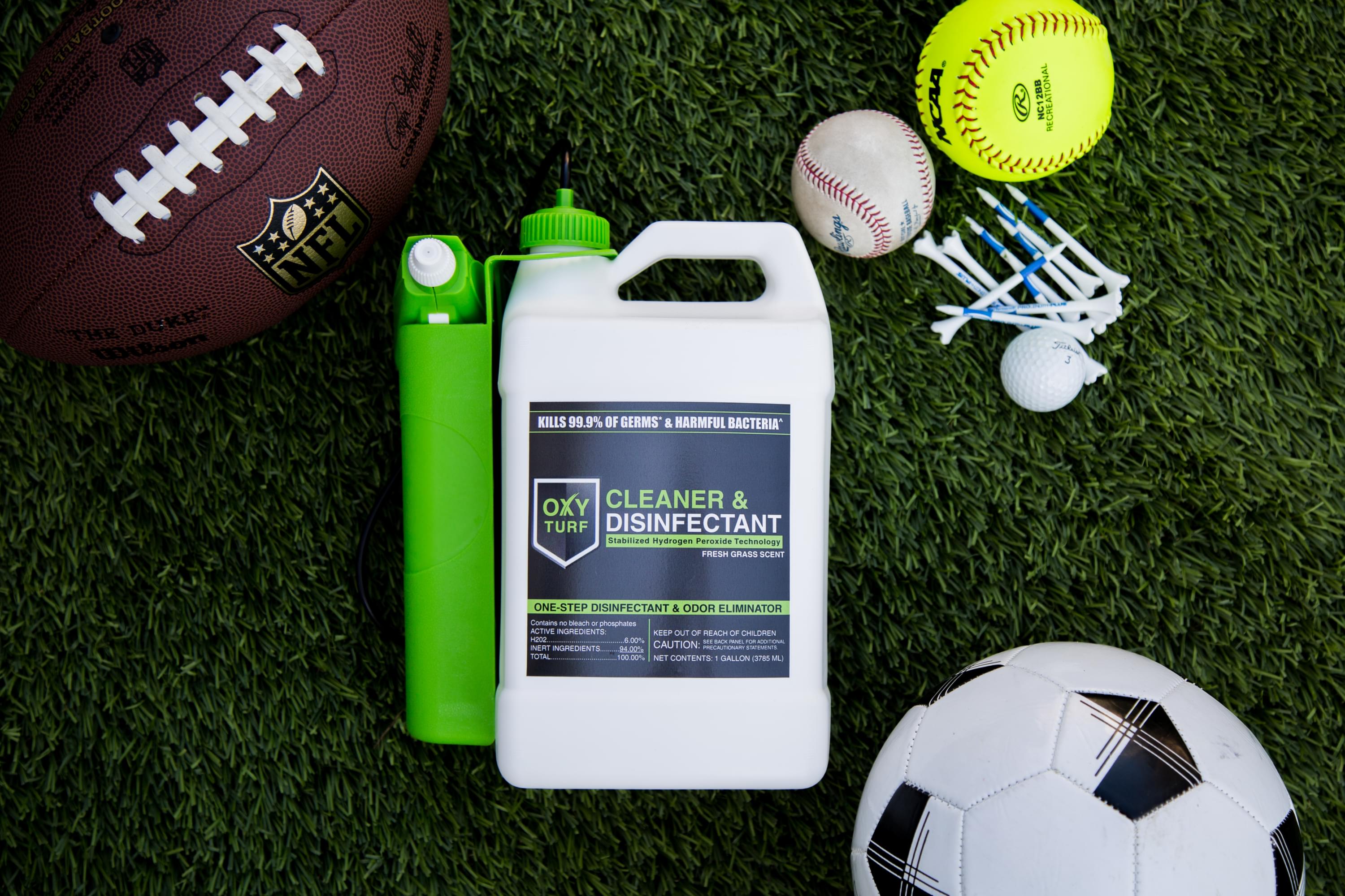• 1 gallon of OxyTurf Disinfects Approx. 1000 sq.ft.